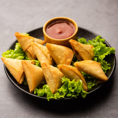 Crisp Pastry filled with mildly spiced potatoes & peas.