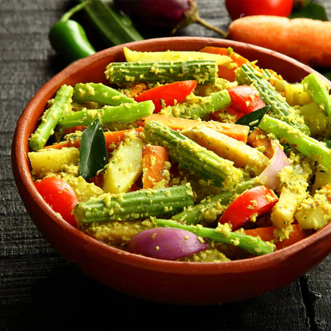 An excellent mix of different vegetables, in a coconut curry.