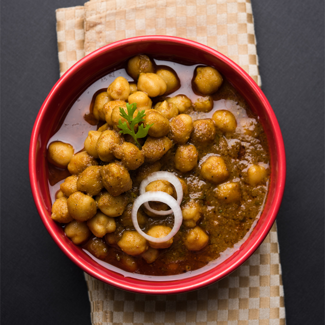 Chickpeas cooked with tomatoes, ginger and onions.