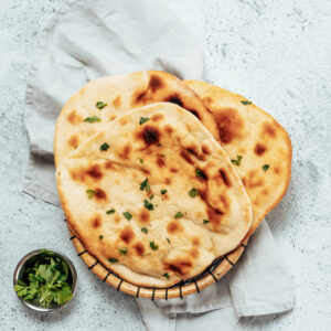 Stuffed naan with nuts, raisins fresh from Tandoori oven (Clay oven).