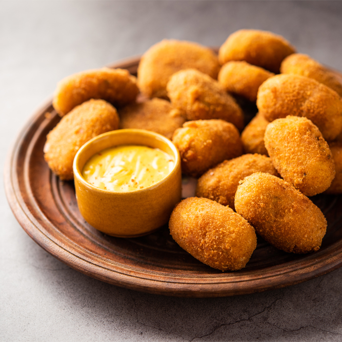 Fresh cottage cheese dipped in gram flour batter & fried. Served with assorted chutneys.