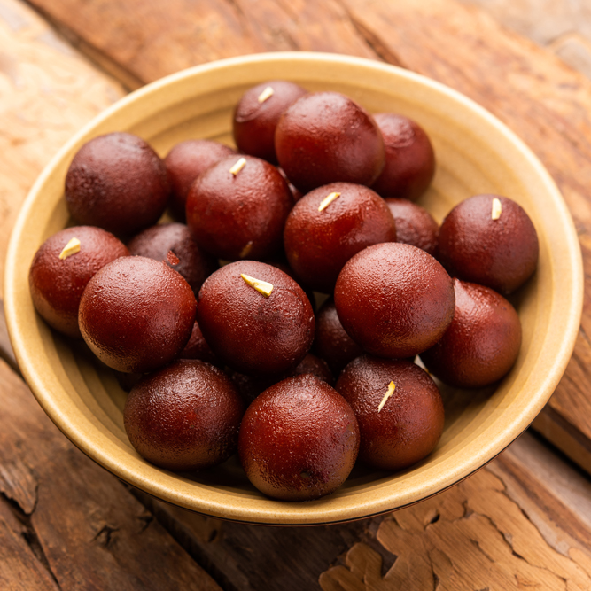 Homemade cottage cheese balls with powdered milk, deep fried and dipped in simple syrup and rose water.