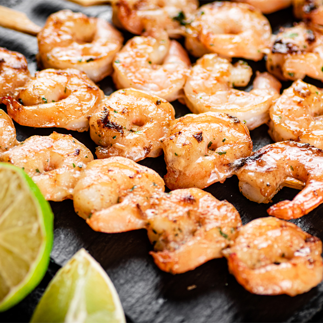 Grilled king prawns marinated with yoghurt and tandoori spices.
